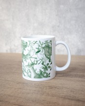 A ceramic mug printed with “The connection of Holy life,” an artwork by Tomoaki Murayama.